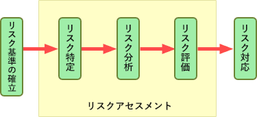 リスクマネジメントの指針を示した規格であるJIS Q 31000では、リスクアセスメントを「リスク特定,リスク分析及びリスク評価を網羅するプロセス全体を指す」と定義しています。